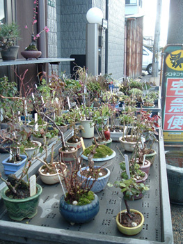 第一回目は小品盆栽店におじゃましました、こちらのお店はそこらへんの園芸店とはちがい、本格的な小品盆栽店です。 | |||||||||||||